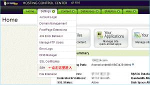1、首先登陸你的Godaddy主機(jī)管理,點(diǎn)擊 如下圖菜單進(jìn)入SSH開(kāi)通設(shè)置