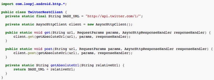 官方推薦的使用方法,使用一個靜態(tài)的請求對象,我們來看看官方例舉的一個訪問Twitter的API的例子: