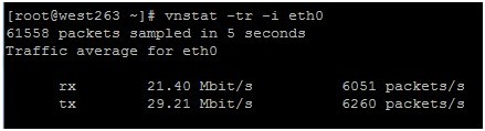 vnstat –tr –i eth0???查看最近五秒的平均流量